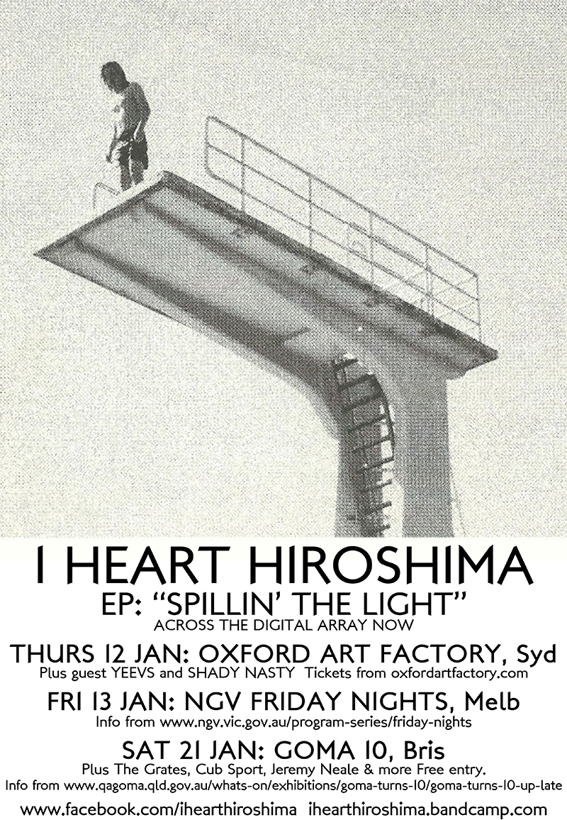 tickets from http://www.thegasometerhotel.com.au/gigs/2017/11/25/i-heart-hiroshima-with-special-guests-p-tickets-20-bf-inc-doors-800-pm